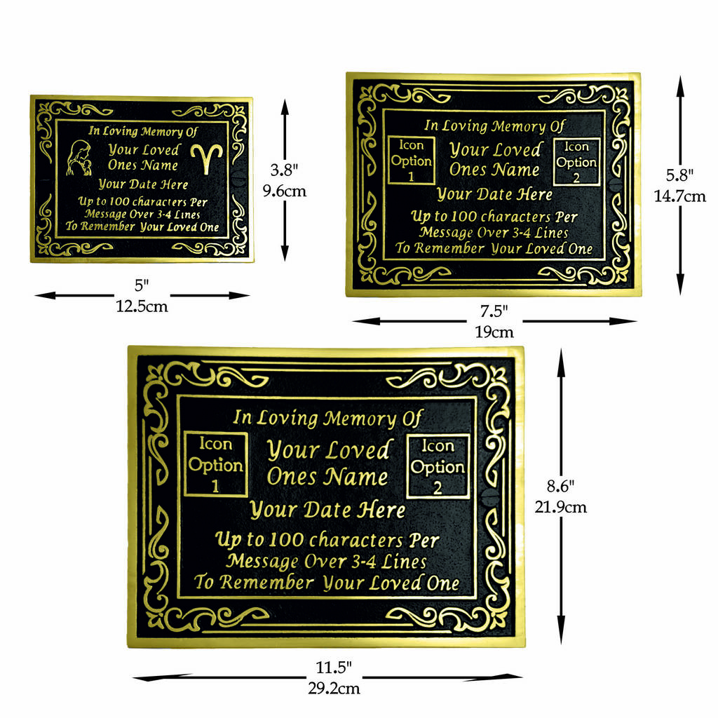 • Plaque – the plaque has a beautiful, coloured background that compliments the polished brass detail.