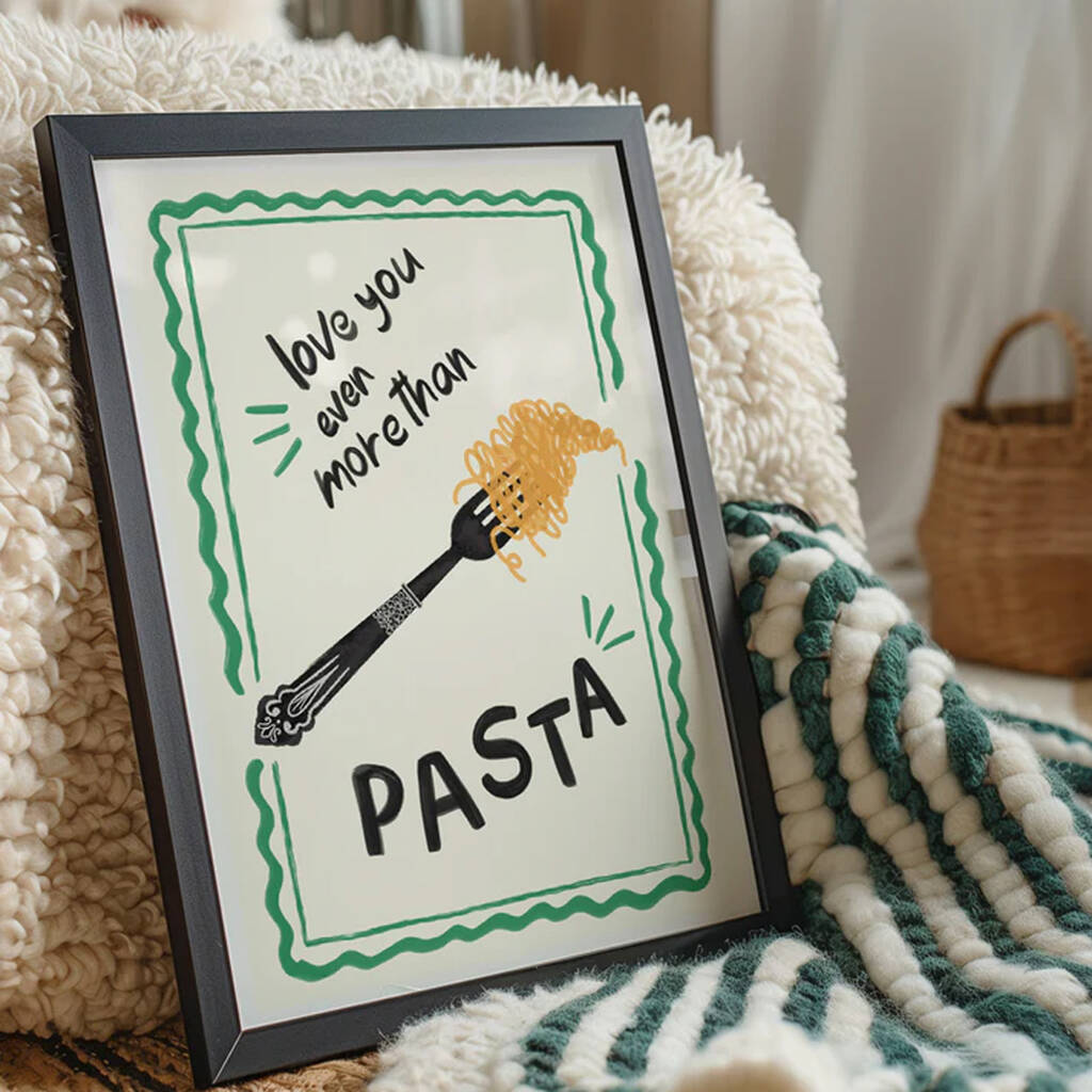 ‘Love You More Than Pasta’ Print, Bookmark And Card Gift Set