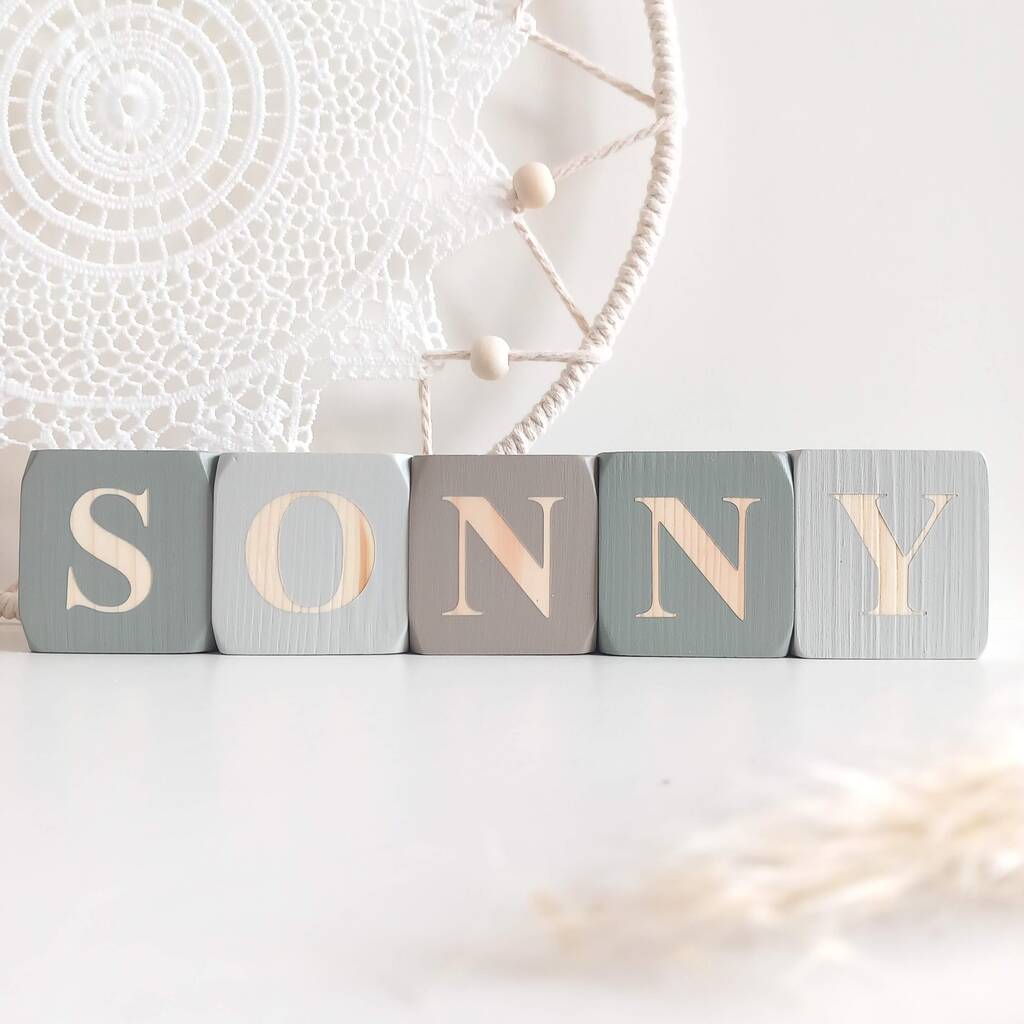Wooden Nursery Letter Blocks, Personalised Baby Boy Gift Sage, Grey, Taupe