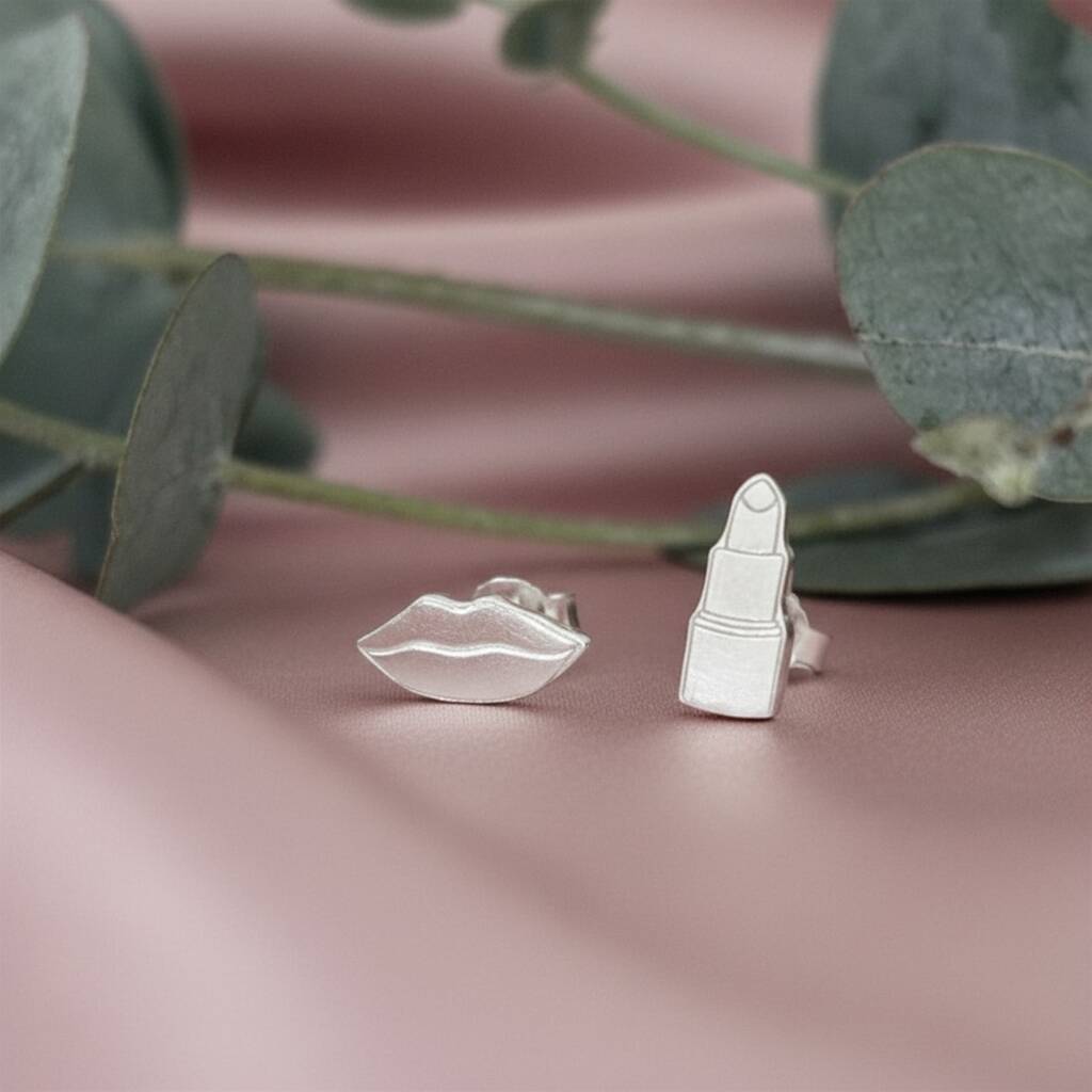 Lips And Lipstick Sterling Silver Stud Earrings
