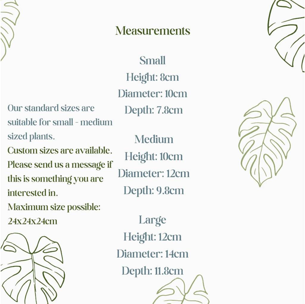 Our products are always designed by us giving you the assurance that they are individual to our brand and can’t be found anywhere else. Our pots would make the perfect gift for someone who loves house plants or home decor! They are designed to be lightweight and robust, making them a great alternative to ceramic pots, which are often heavy and fragile.