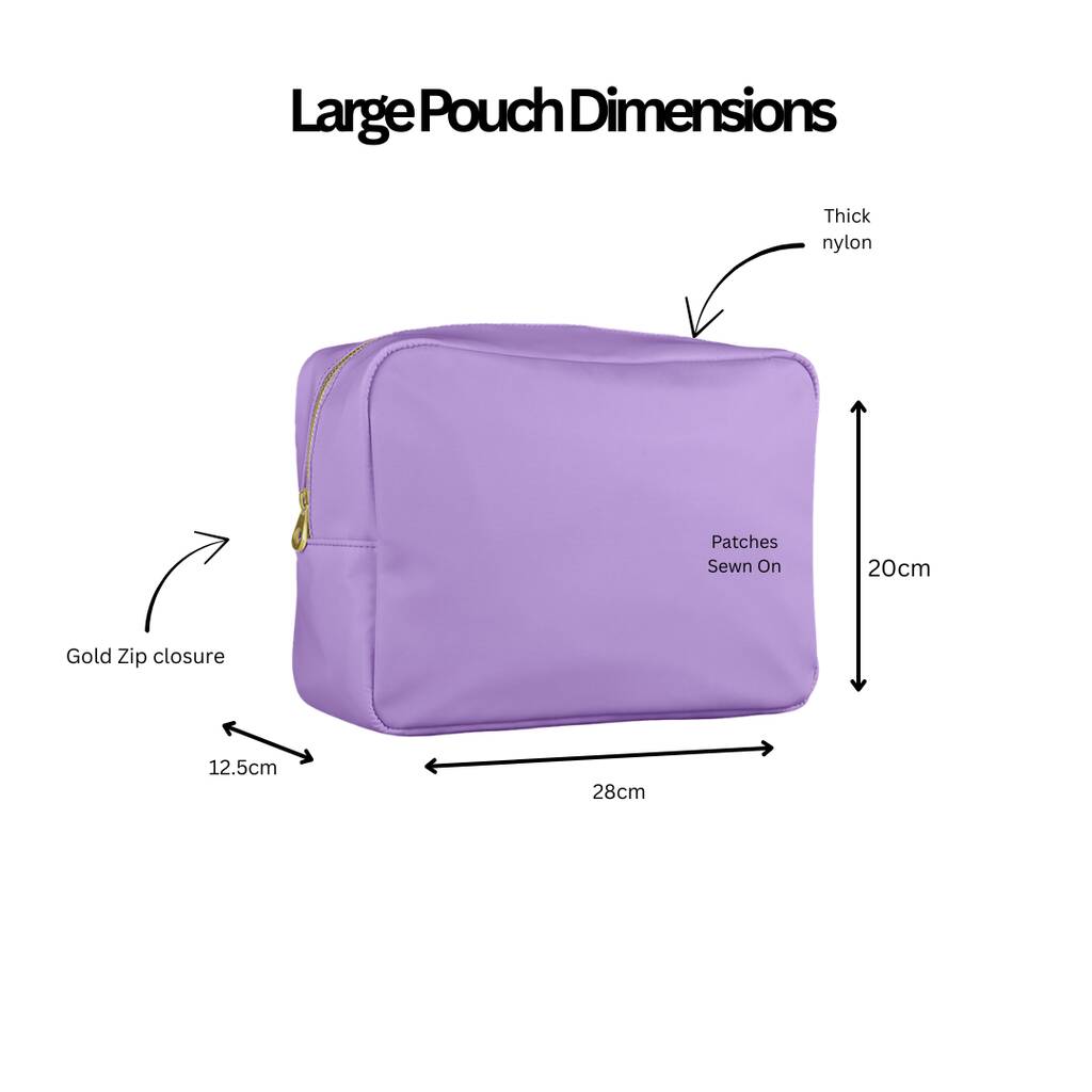 Each pouch is personalised with your chosen name or word or embroidery (depending on your preferred finish), making it a unique keepsake gift for kids, teens, and adults.Dimensions: 28cm x 20cm x 12.5cm