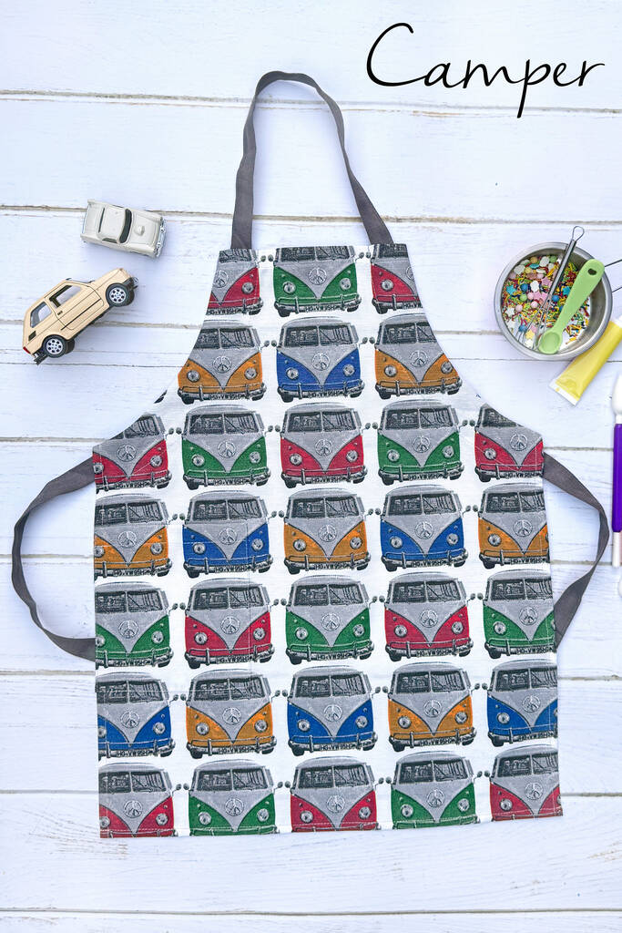 Our kids’ aprons come in a cheerful selection of playful prints, with the camper van design featured as the hero style. Inside the collection you’ll find fun choices for every little personality - cars, vans, fruit, cupcakes, cats, ducks, figs and more.