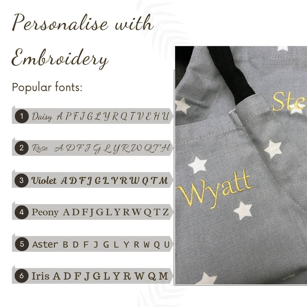 Alongside the camper van design, the collection includes a wide range of colourful prints for boys and girls - from cars and trucks to cupcakes, fruit, cats and ducks. Personalisation is available to create a special keepsake or a meaningful gift.