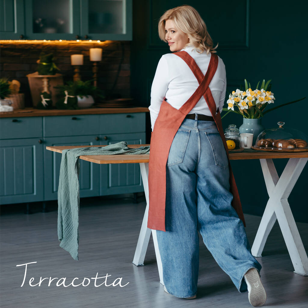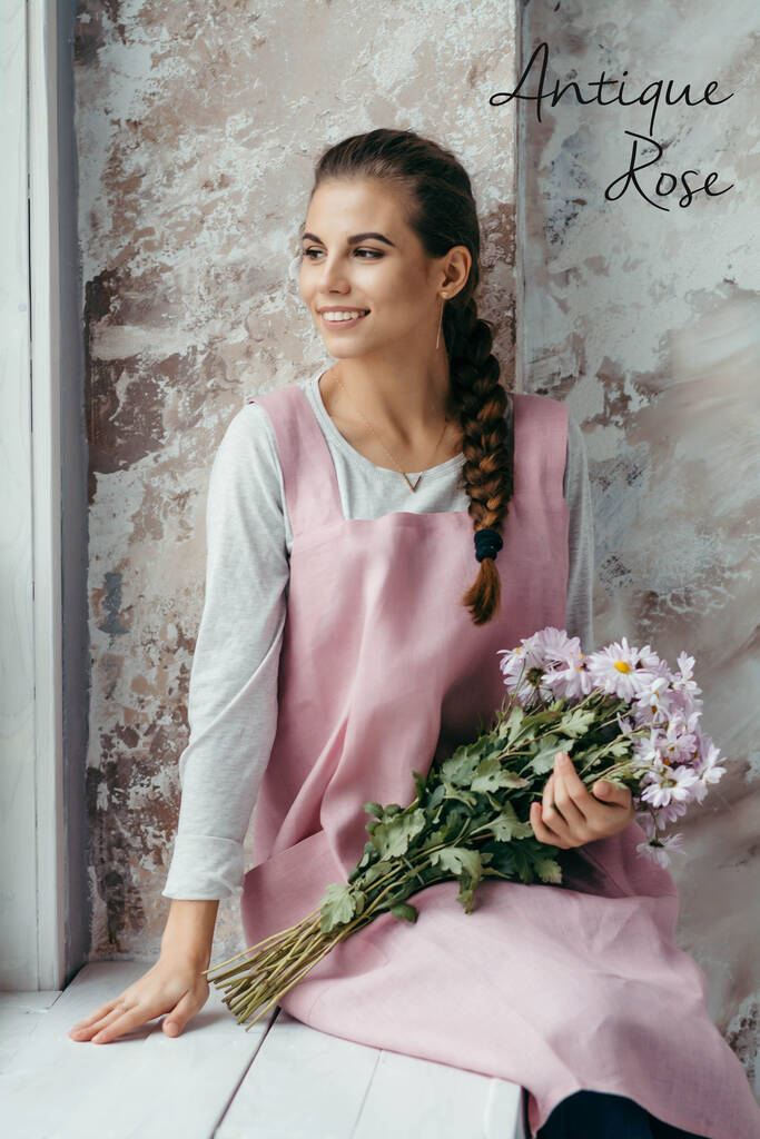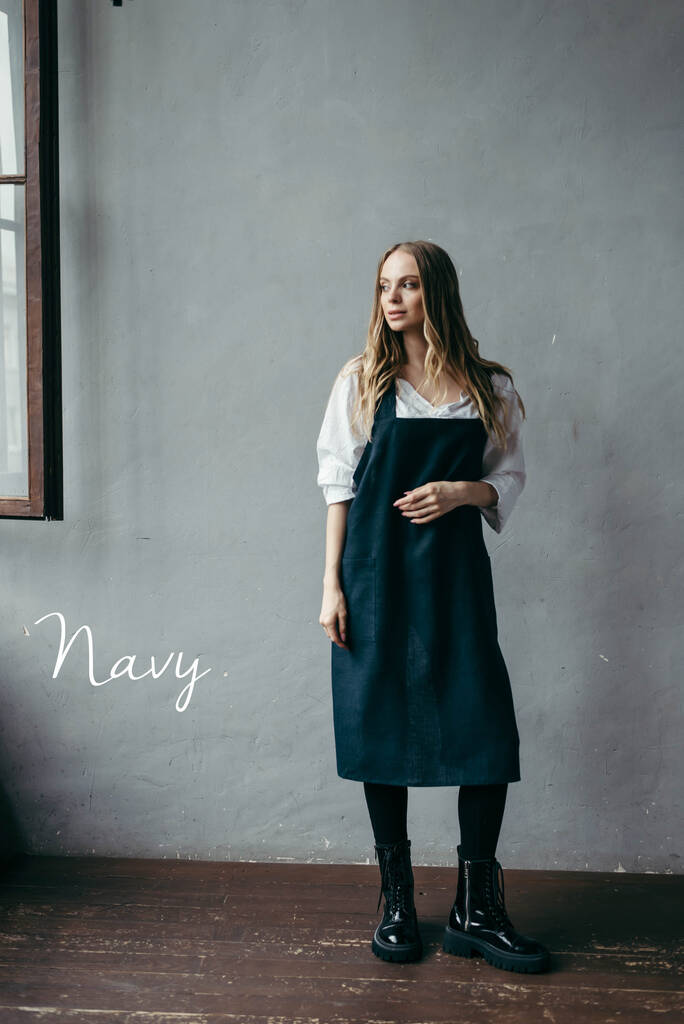 Linen Cross Back Apron | Japanese No Tie Pinafore With Pockets