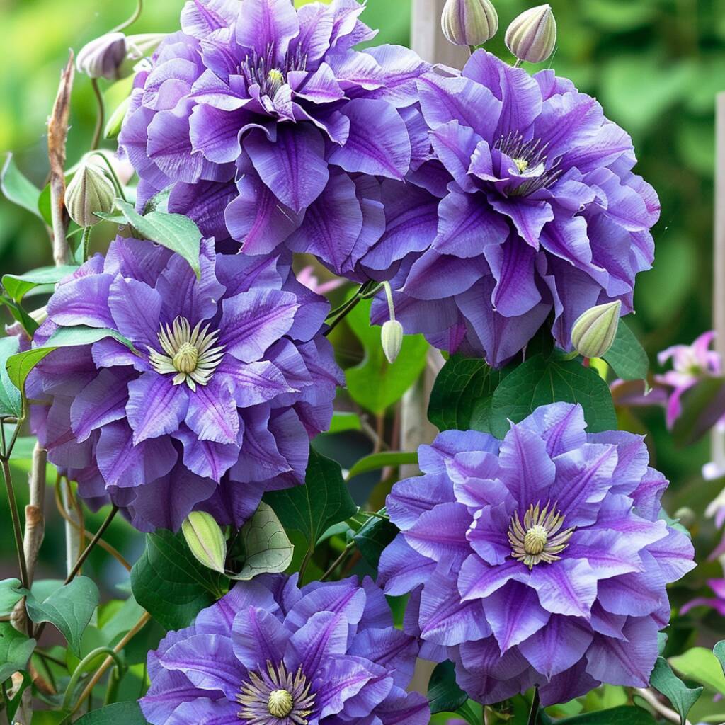 Clematis ‘Diamantina’ typically reaches a mature height of approximately 1.2–1.5 metres, with a spread of around 60–80cm. Its compact size makes it particularly well suited to pots, containers, obelisks, and smaller garden structures. The flowers are large and densely packed, creating strong visual impact despite the plant’s modest proportions. This balanced habit allows ‘Diamantina’ to add vertical interest without overwhelming neighbouring plants, making it ideal for patios, courtyards, and contemporary garden layouts where space is limited but elegance is essential.