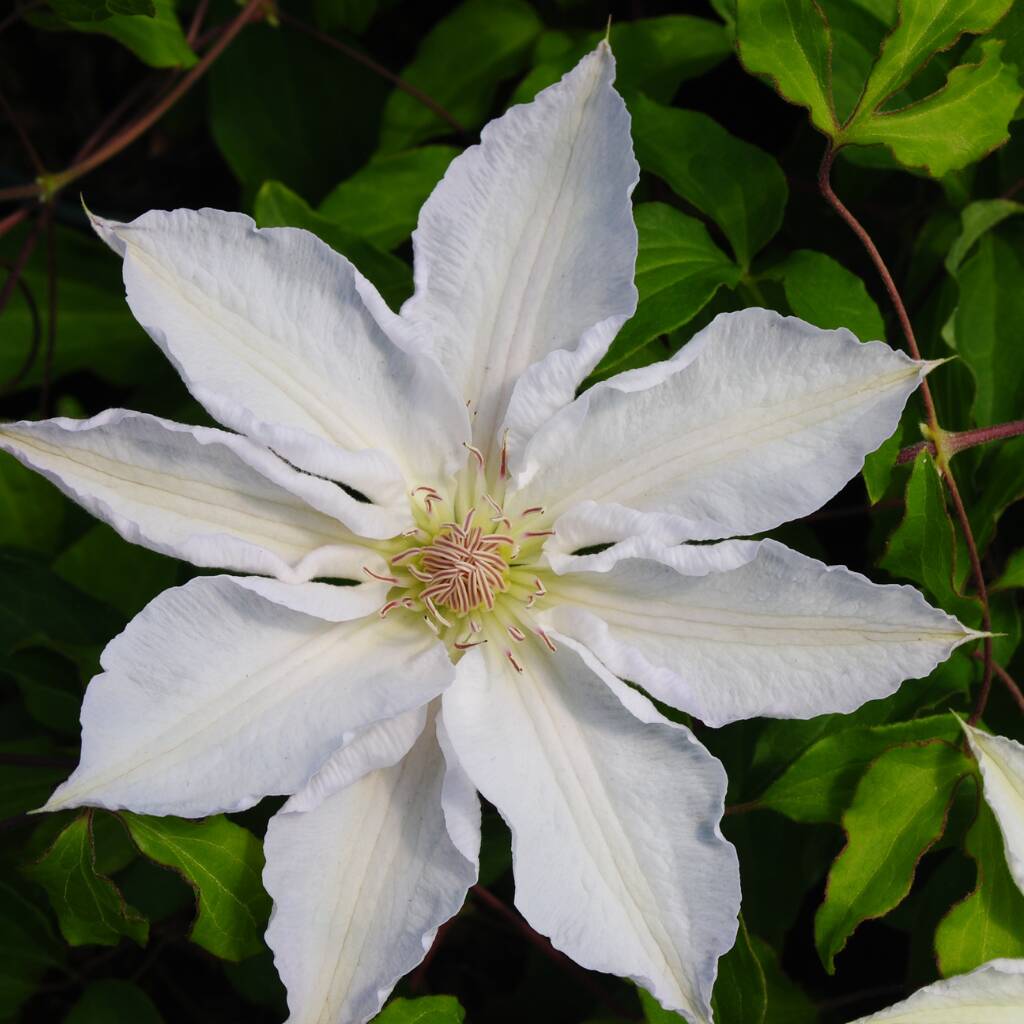 Its compact yet vigorous habit, combined with large, pure white flowers and repeat flowering, makes Clematis ‘Hyde Hall’™ perfect for decorative patio containers, contemporary garden designs, or traditional borders requiring summer-long interest.
