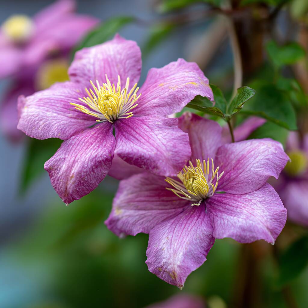 Clematis ‘Margaret Hunt’ is a classic large-flowered clematis, admired for its subtle colouring, strong growth and long flowering season. Unlike bolder, more vivid varieties, this cultivar offers a refined palette of greyish-lavender and soft mauve-pink, making it an excellent choice for gardeners who prefer understated elegance and harmonious planting schemes.