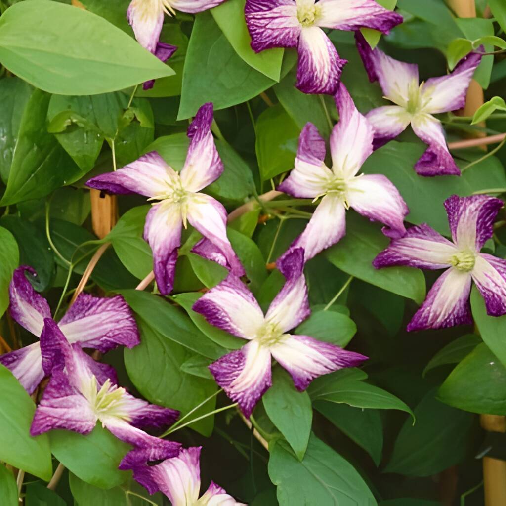 As a vigorous and reliable climber, ‘Minuet’ can reach heights of 2–3m (6–10ft) and a spread of 1–2m (3–6ft), making it suitable for trellises, arches, pergolas, fences, and obelisks. Its natural scrambling habit allows it to weave elegantly through large shrubs, climbing roses, or other vertical structures, creating a layered and romantic display. It also functions as an effective ground cover, ideal for covering banks, slopes, and bare soil.