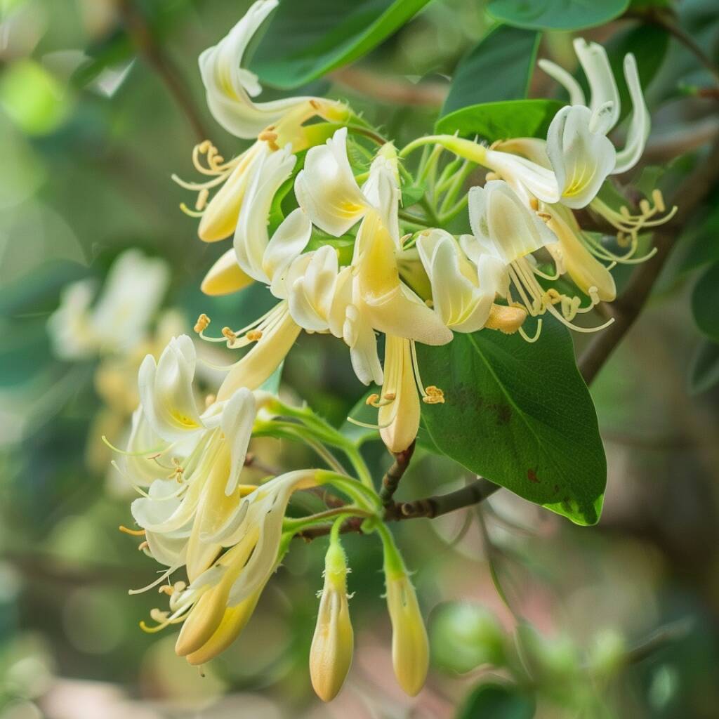 The standout feature of ‘Delavayi’ is its flowers. From late summer, clusters of slender, tubular blooms appear along its twining stems. Flowers open creamy-white and gradually deepen to golden-yellow, creating a subtle bi-colour effect. These flowers release a strong, sweet perfume, especially potent in warm evenings, making it ideal near patios, seating areas, or garden walkways. The flowers attract bees, butterflies, and other pollinators, supporting garden biodiversity.
