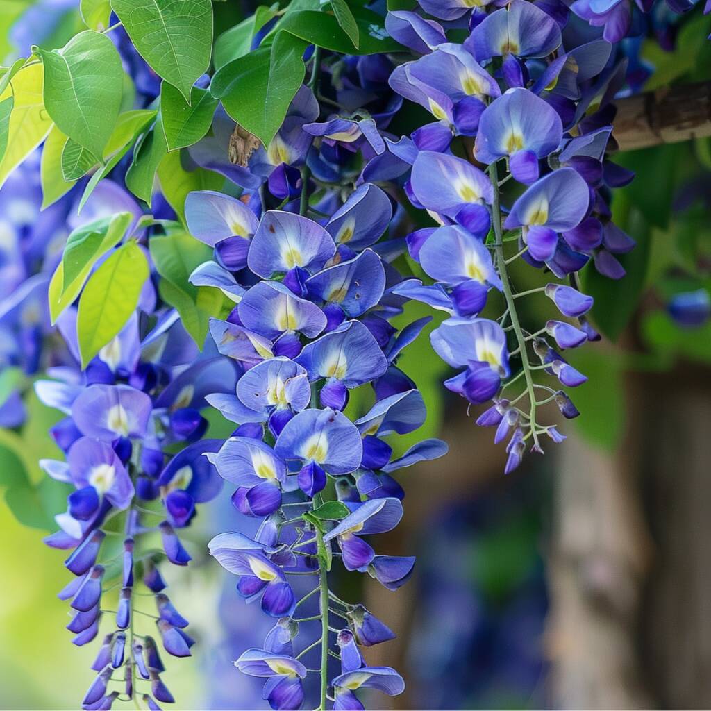 This variety is highly prized for its rare double flowers, which give each raceme a full, layered appearance, distinguishing it from standard single-flower Wisterias. The long pendulous racemes, typically 35–40 cm in length, hang in dense, ruffled clusters, producing a luxurious curtain of blooms in late spring. Sequential flowering along the racemes extends the display, creating weeks of breathtaking impact. The intensely sweet fragrance fills the air around pergolas, arbours, and walls, offering a sensory-rich garden experience that combines visual drama with aromatic delight.