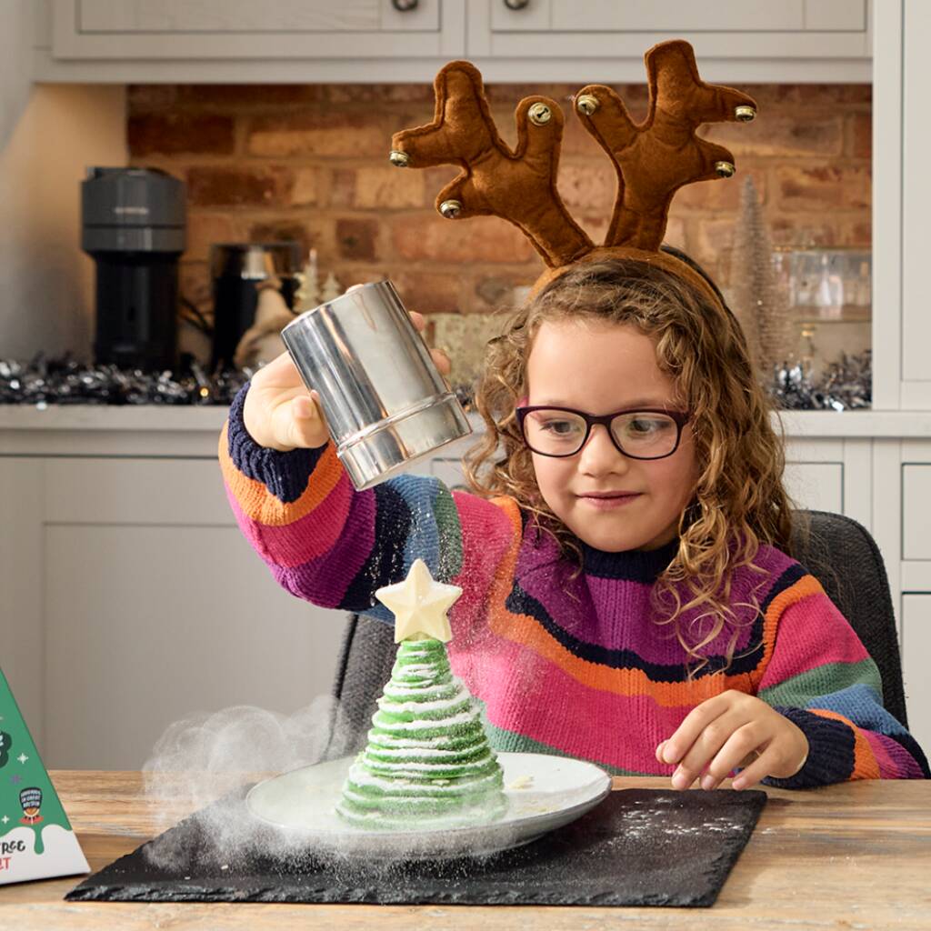 Contents: A sachet of pre-measured dry pancake mix — simply add your favourite milk and optional unsalted melted butter — plus three mini sachets filled with icing sugar, mini white chocolate stars, and a big white chocolate star topper.