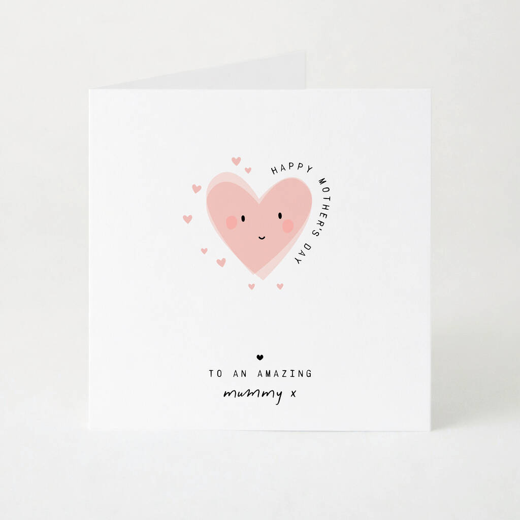 Cute Happy Mother’s Day Card For Mummy Pink Heart Design