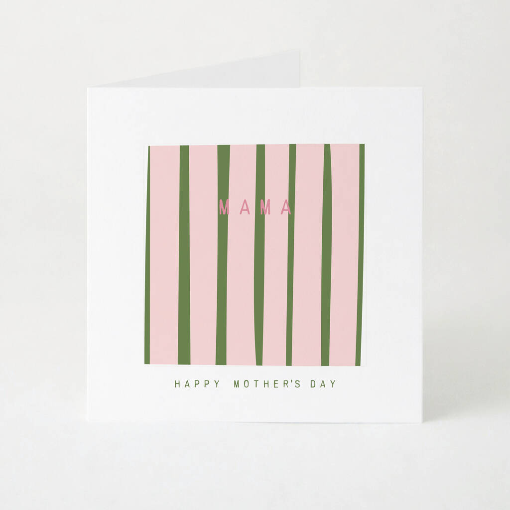 Mama Mother’s Day Card Modern Pink And Green Stripe Design
