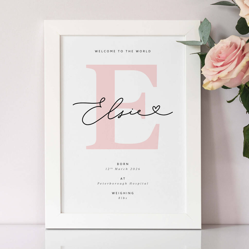 Personalised Baby Name Print Birth Announcement Nursery Wall Art Initial Print