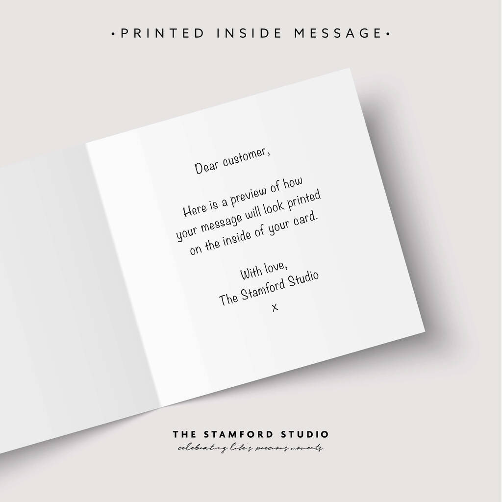 Blank inside, including plenty of space for your handwritten sentiments. Alternatively, include a printed inside message. Select this option from the drop-down menu and type your message into the personalisation box.