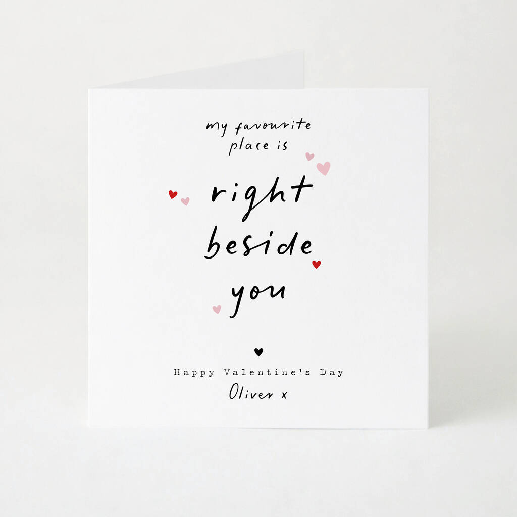 Personalised My Favourite Place Is Right Beside You Valentine’s Day Card With Handwritten Style Lettering