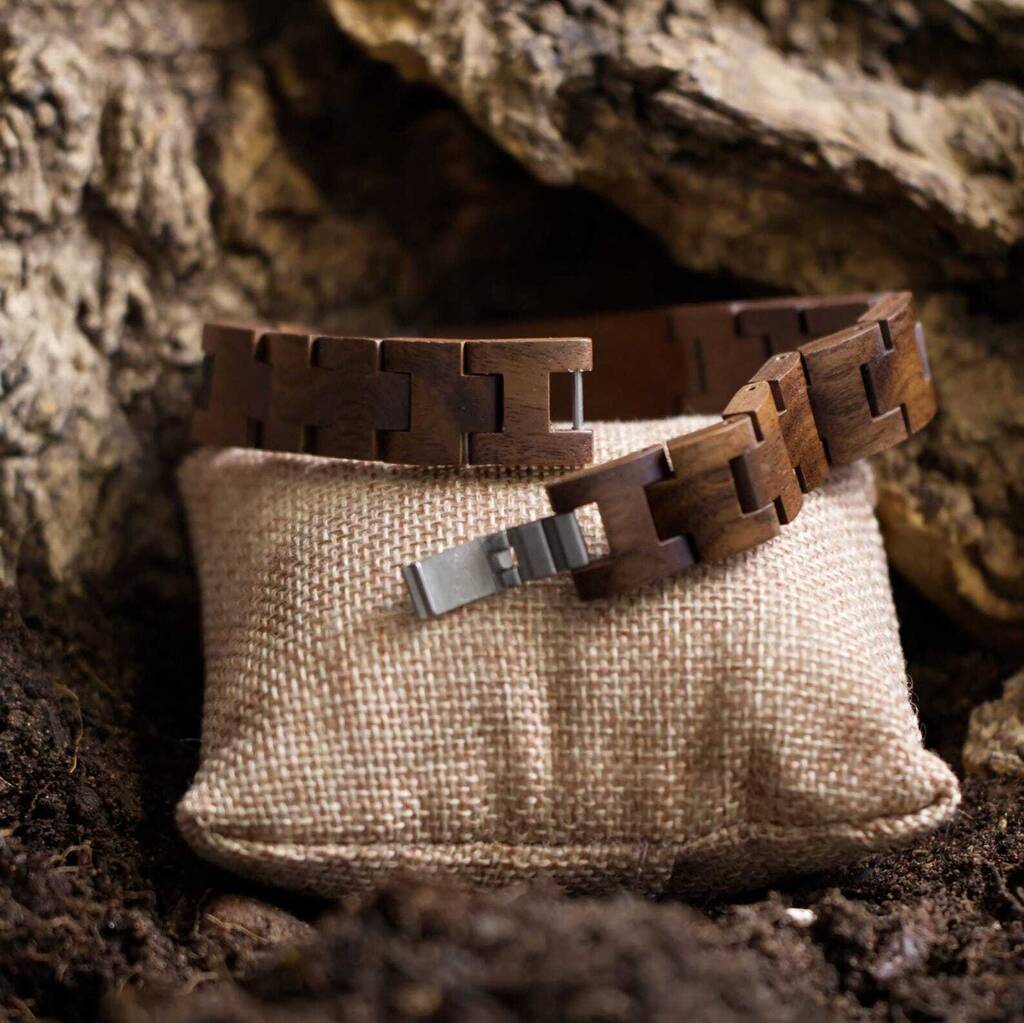 Engraved Walnut Wood Bracelet – Personalised Wooden Gift For Him And Her
