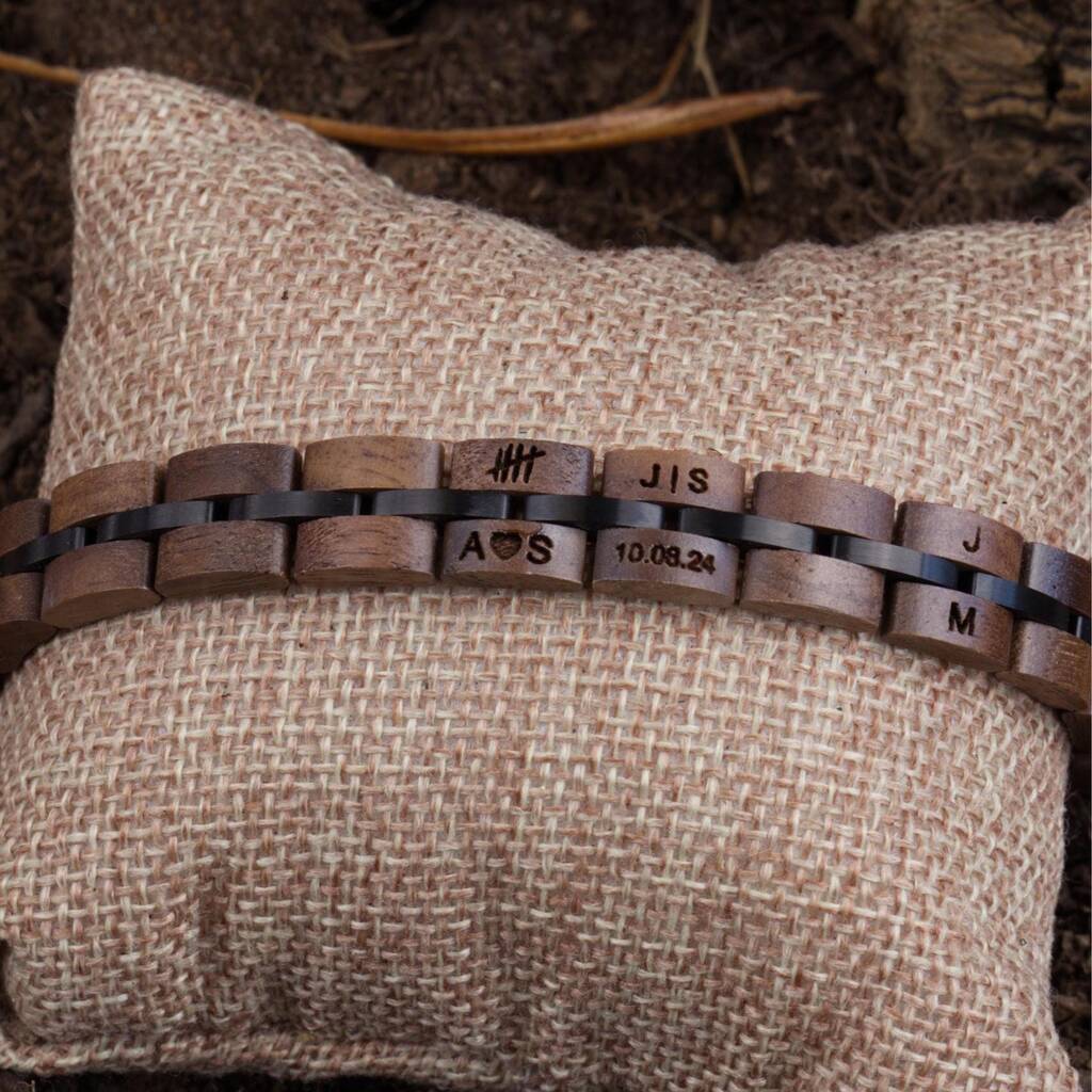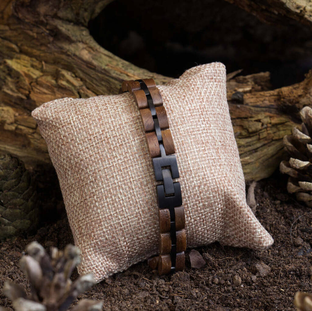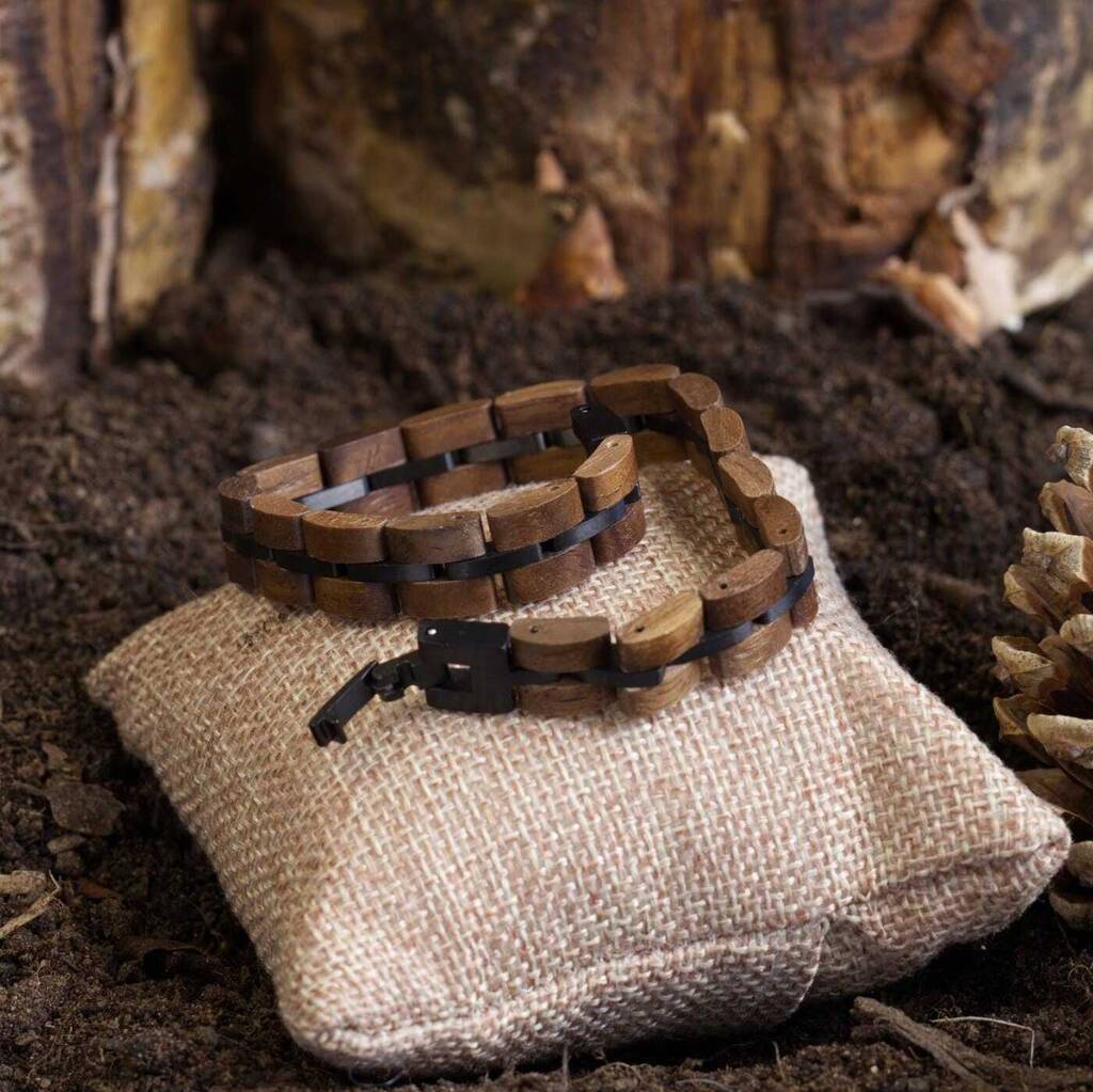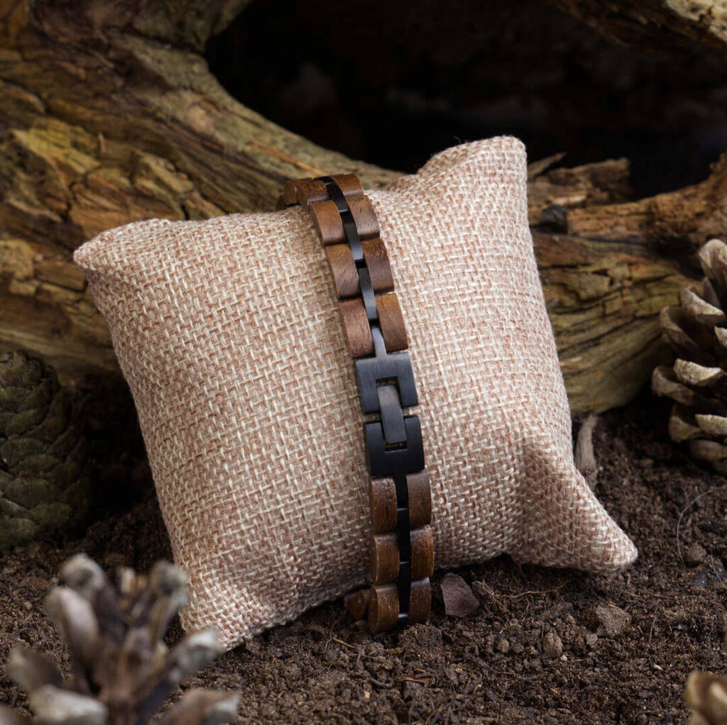 Men’s Wooden Bracelet Gift For Him, Walnut And Black Stainless Steel Bracelet For Boyfriend, Husband Or Dad