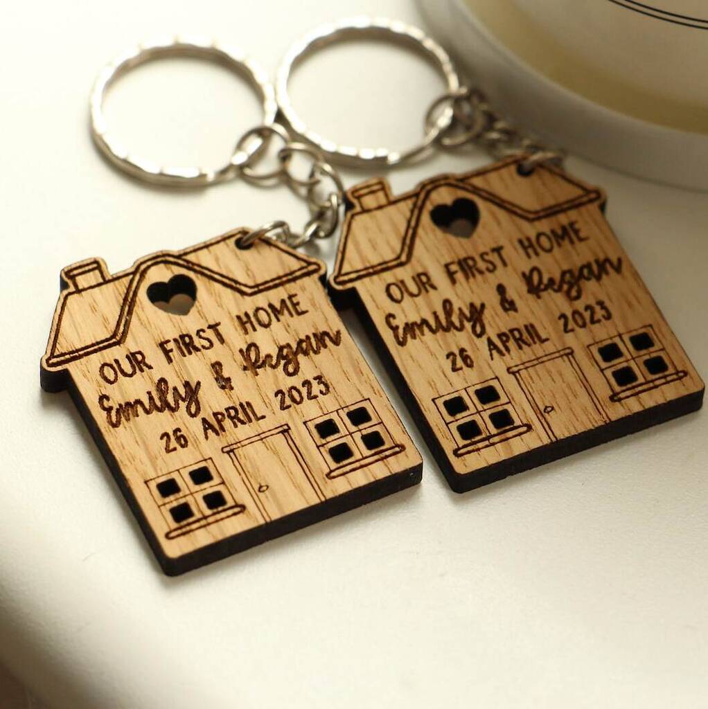 Personalised New Home Keyring – “Home Sweet Home / Our First Home / My New Home” Couples Gift