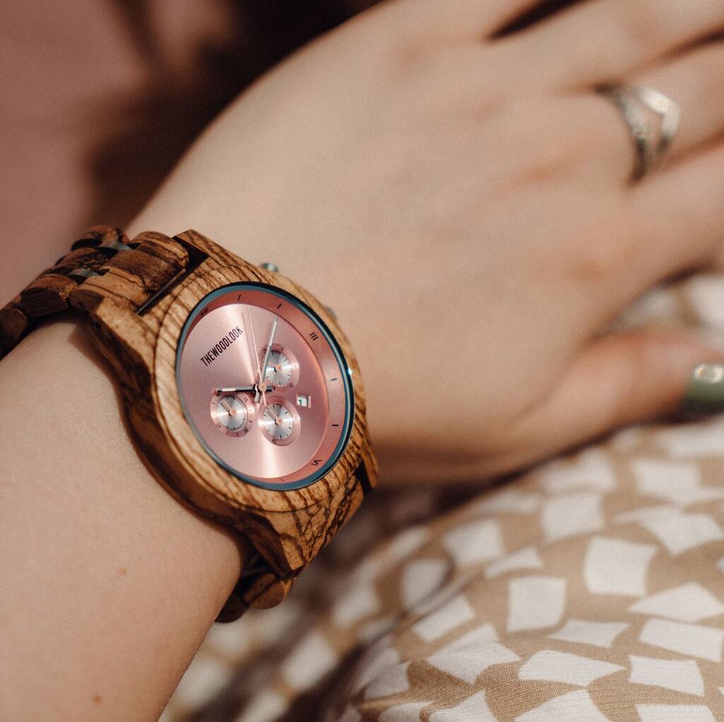 Personalised Pink Wooden Watch For Women – Personalised Natural Wood Timepiece