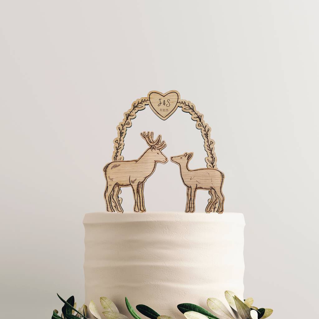 Personalised Stag And Doe Wooden Wedding Cake Topper