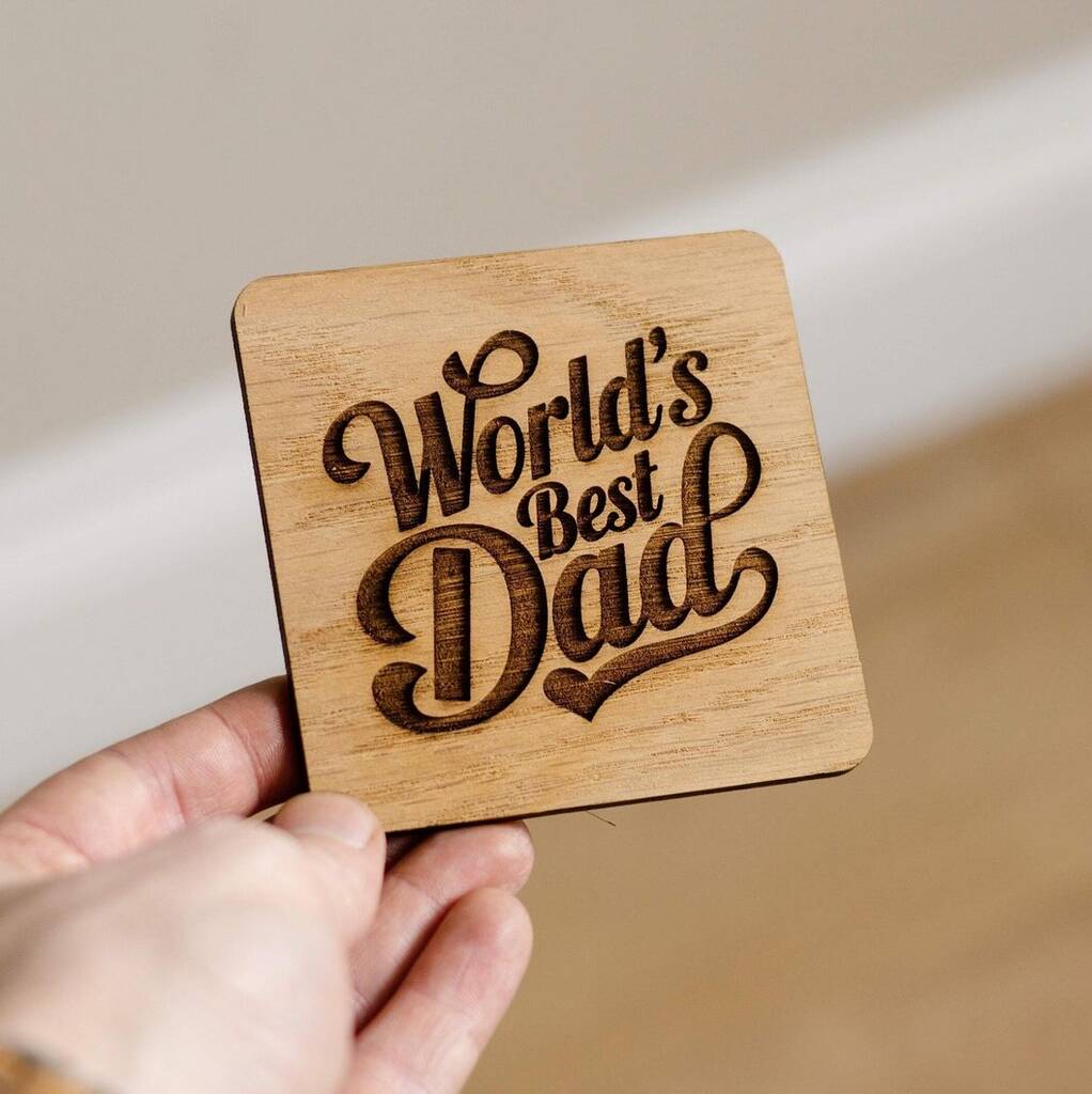 ‘World’s Best Dad’ Oak Drinks Coaster – Fathers Day Engraved Gift For Dad