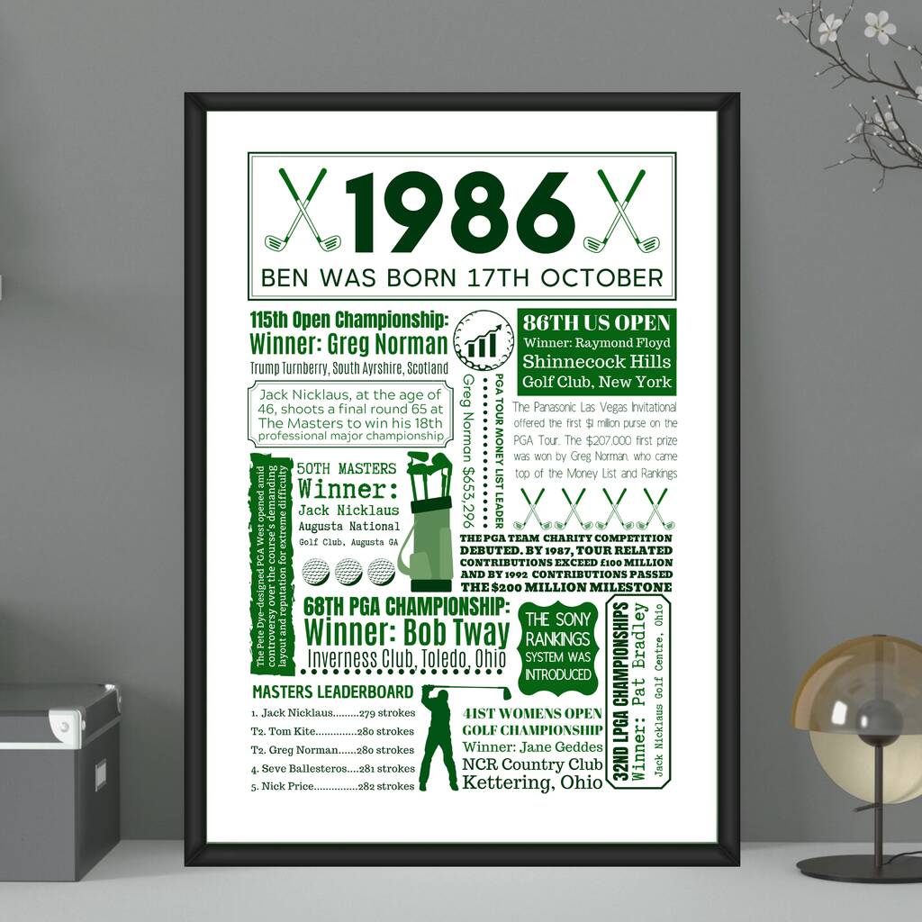 1986 Personalised 40th Birthday Golf Fact Poster