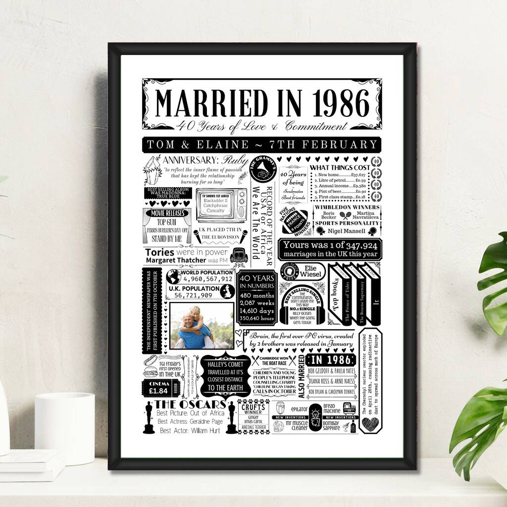 1986 Personalised 40th Ruby Anniversary Poster With Photo
