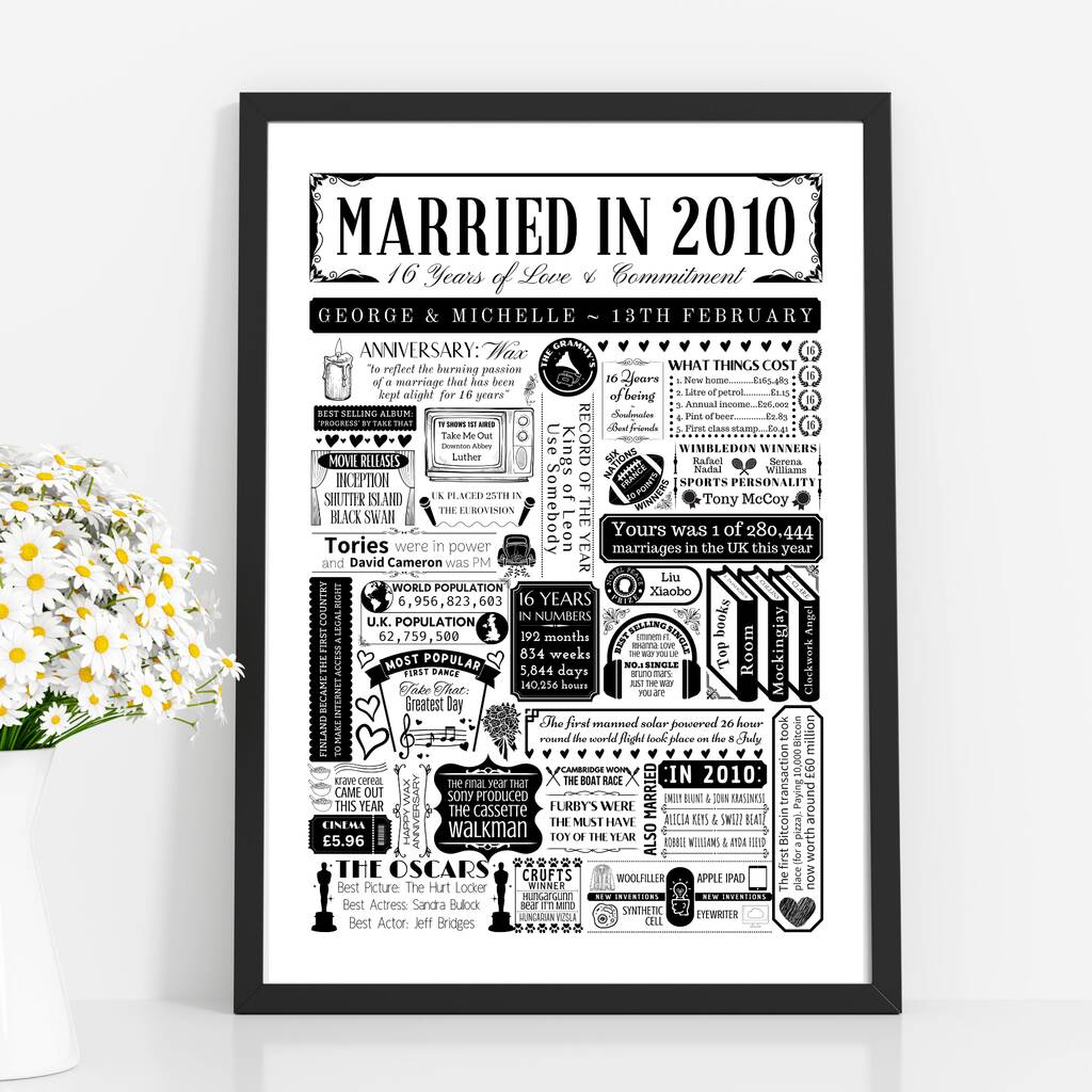 2010 Personalised 16th Wax Wedding Anniversary Poster