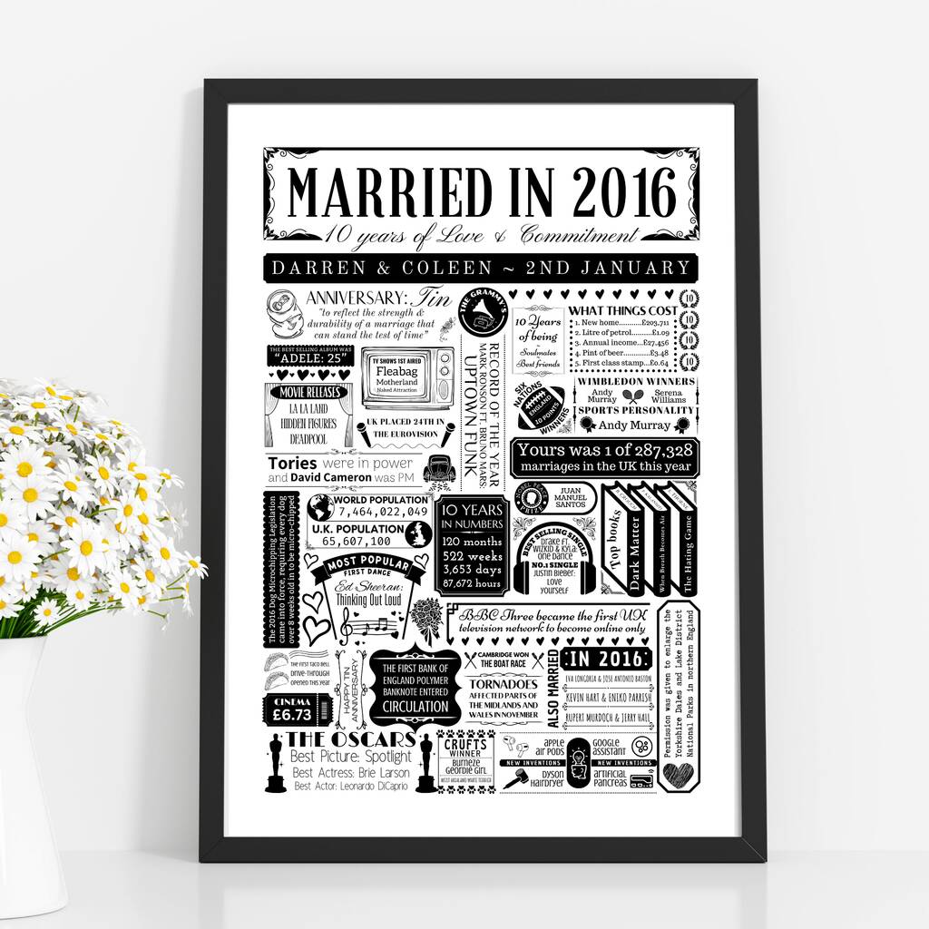 2016 Personalised 10th Tin Wedding Anniversary Poster