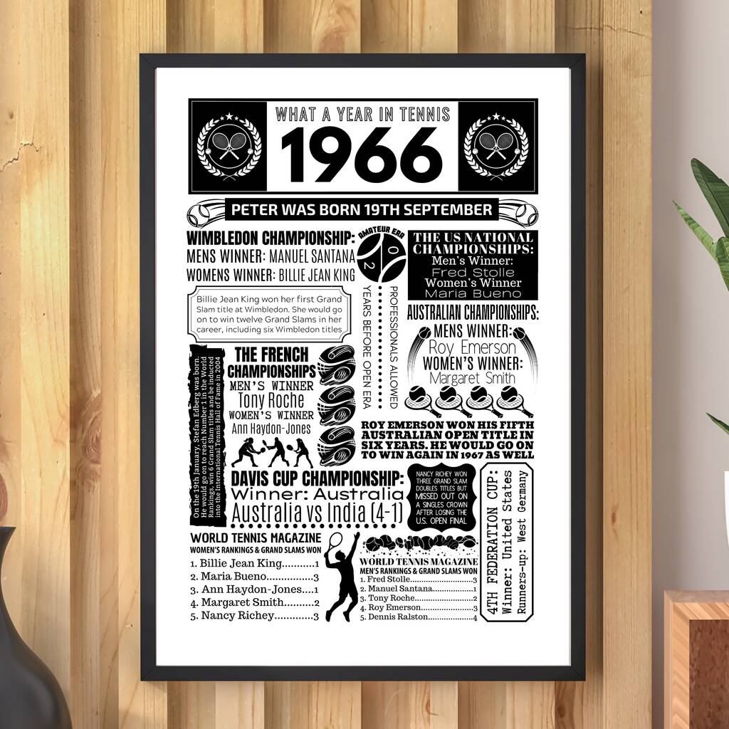 Personalised 60th Birthday Tennis Print, Custom Gift