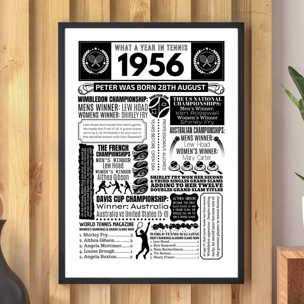 Personalised 70th Birthday Tennis Print, Custom Wall Art Gift