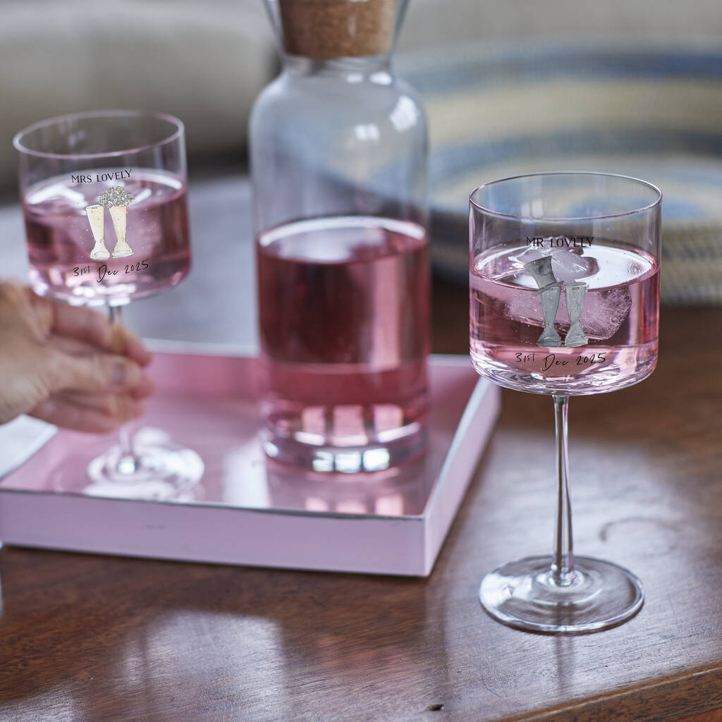 Personalised Pair Of Wedding Welly Champagne Glasses