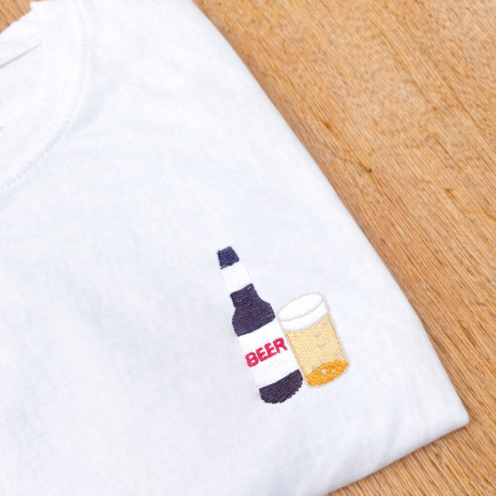 Beer And Pint Embroidered T Shirt. Fathers Day / Birthday Gift