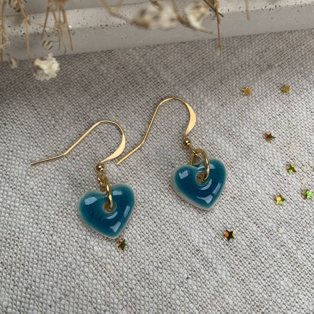Small Green Blue Turquoise Ceramic Heart Earrings