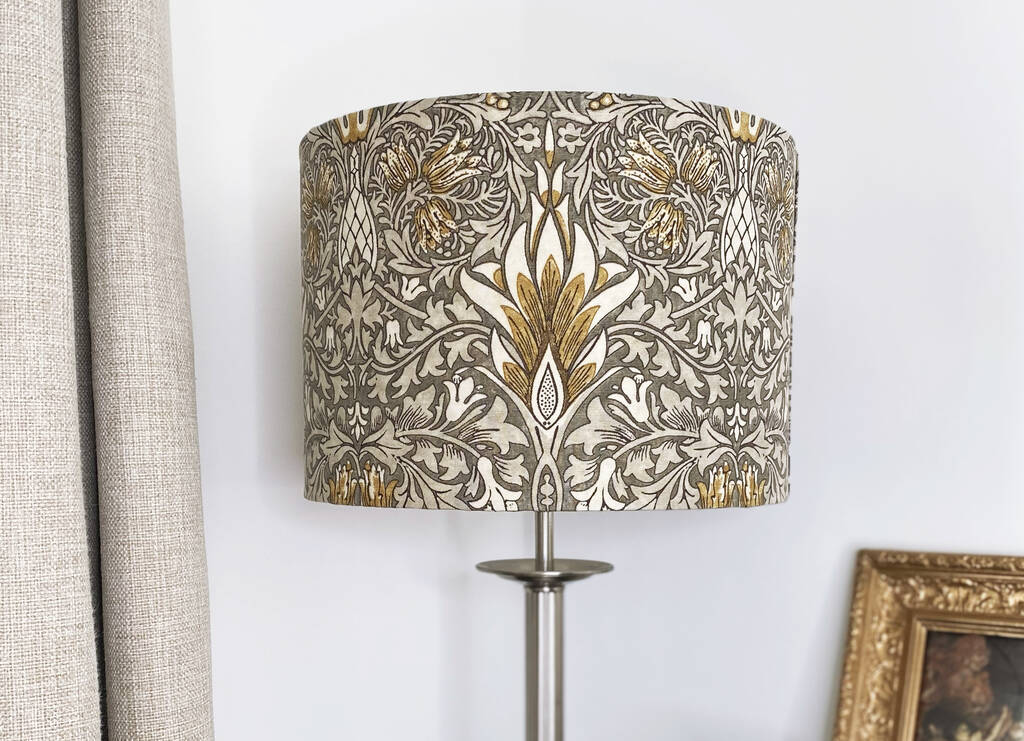 Authentic William Morris fabric lampshade, handmade in our studio with great care and attention to detail.