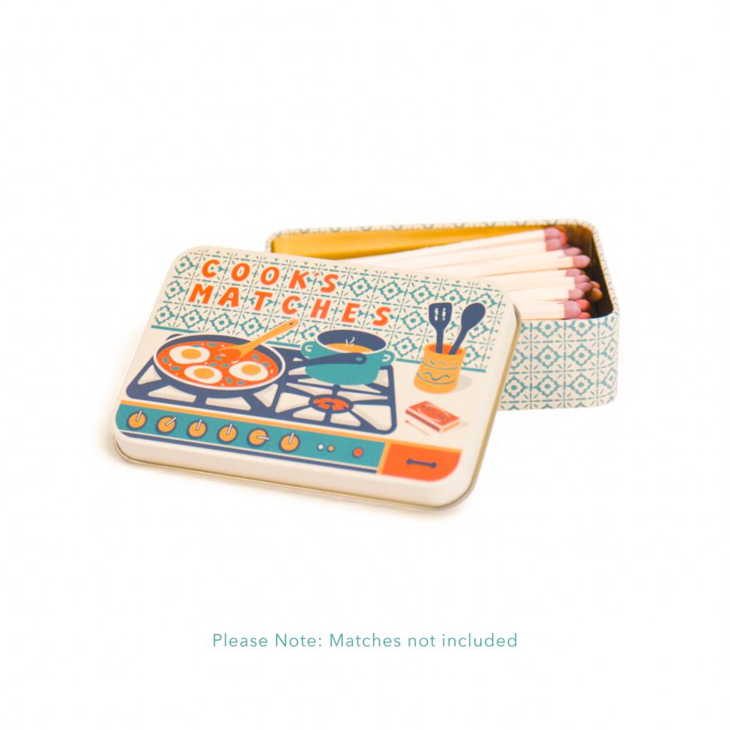 *PLEASE NOTE: MATCHES NOT INCLUDED* Designed to store 100mm (4 inch) matches. Discover the perfect mix of style and function with TINIT's Statement Match Tin Collection - thoughtful gifts that always get a smile. Each compact 107 × 70 × 30 mm tin features a unique hand-drawn design, a hidden striker, and a luxurious gold interior to keep matches dry and ready. Perfect for lighting candles, stoves and fireplaces, and ideal as housewarming gifts, gifts for mums, gifts for dads, Secret Santa, or presents for people who have everything. Playful, practical and guaranteed to spark conversation.