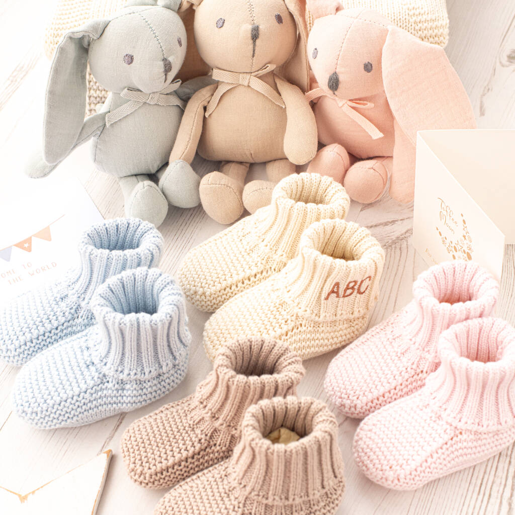 Baby Booties And Bunny Rabbit Toy Gift Set