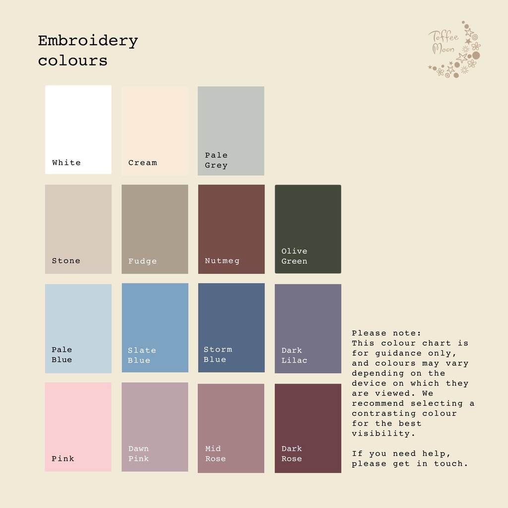 If you would like to make this gift set even cosier, we offer a range of coordinating knitted Bubble Cardigans for £25 with the option to personalise with an embroidered name on the chest in a wide range of embroidery colours for an additional £10 charge. Choose neutral or colourful embroidery from our selection.