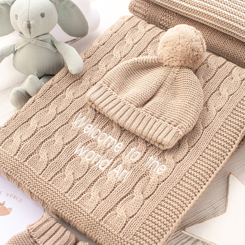 Make your gift extra special with our personalisation service, available for blankets, cardigans, and hats. Add baby’s name, date of birth, or a special message to blankets for £15 (up to 20 characters per line, 2 lines max). Personalise a bobble hat for £10 with initials or a short name (max 8 letters), or a cardigan for £10 (max 6 letters).