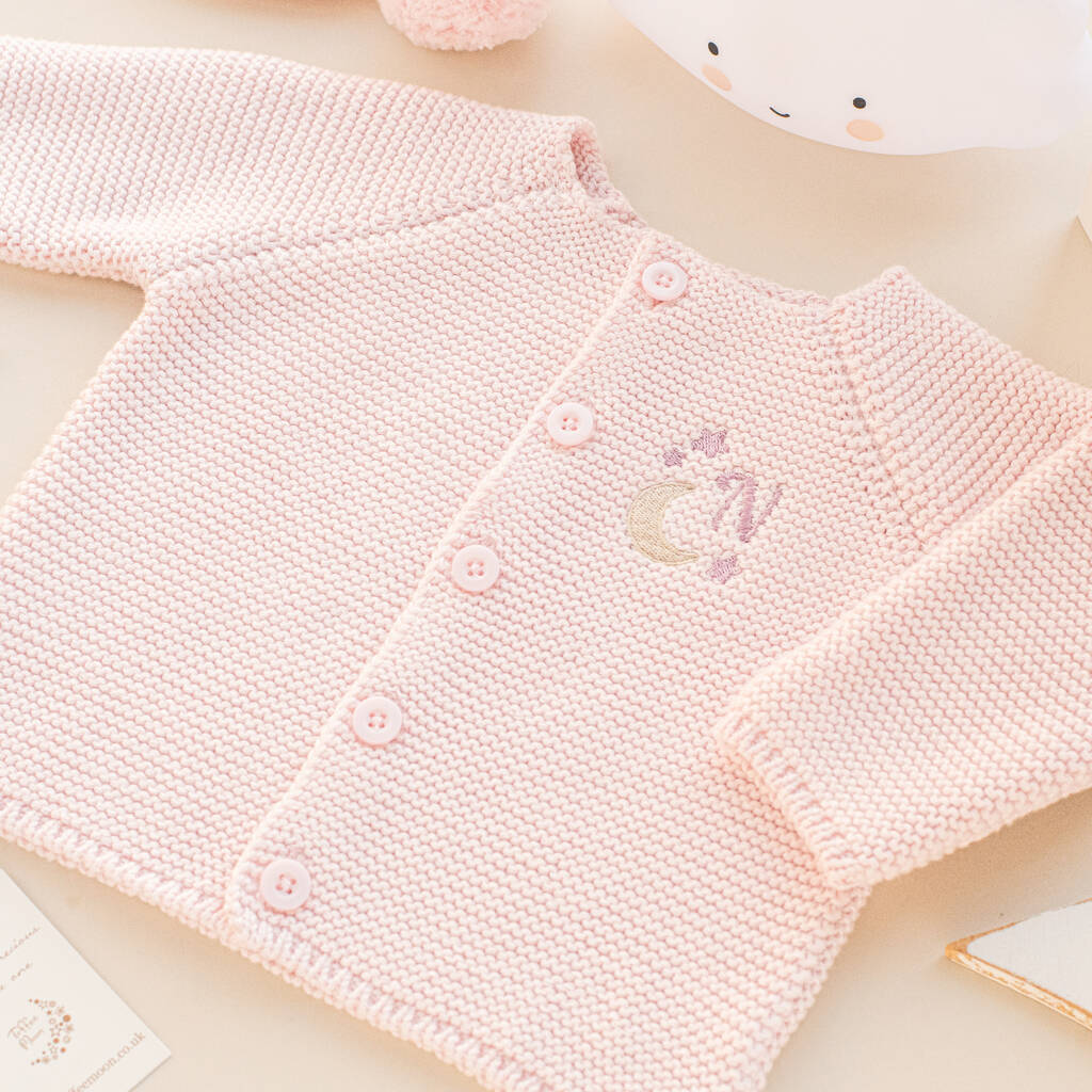 Personalised Pink Baby Girl Cardigan With Moon And Stars Embroidered Initial