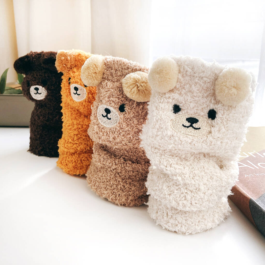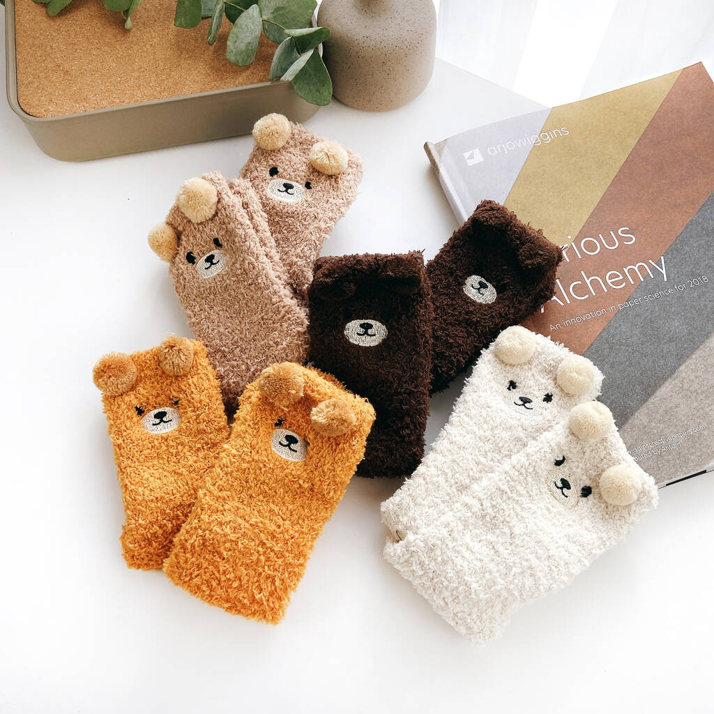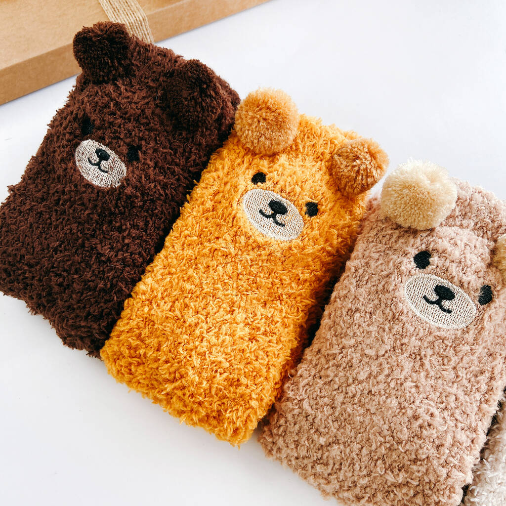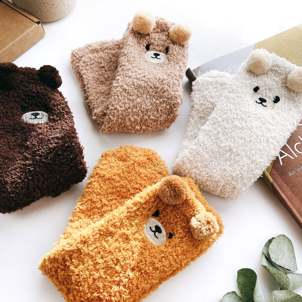 Fluffy Fleece Bear Socks: Cosy Winter Pyjama Sleep Socks