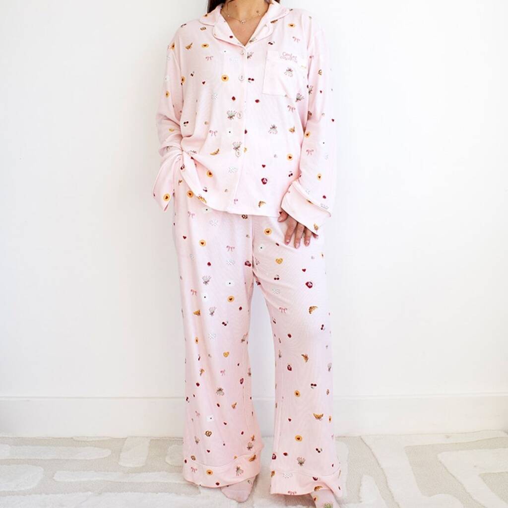 Your new favourite PJs Made from super soft fabric and finished with a pastry print, designed for lazy breakfasts, relaxed evenings, and all day lounging.Ribbed Texture
