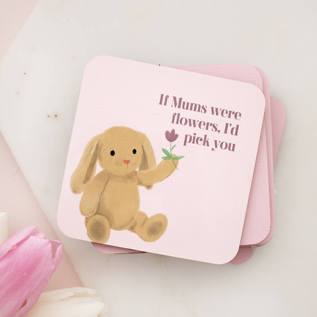 Celebrate someone special with this charming coaster, featuring the sweet message “If Mums Were Flowers, I’d Pick You.”