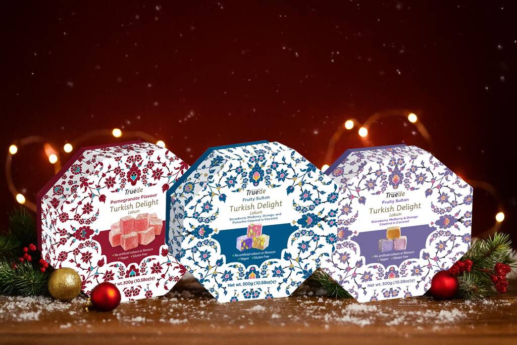 A luxurious assortment of Turkish delights, featuring vibrant fruit flavours and a coconut coating. Enjoy the refreshing tang of pomegranate, or indulge in the rich combination of strawberry, mulberry, and orange, with options enhanced by crunchy pistachio for a perfect balance of sweetness, texture, and exotic flair.