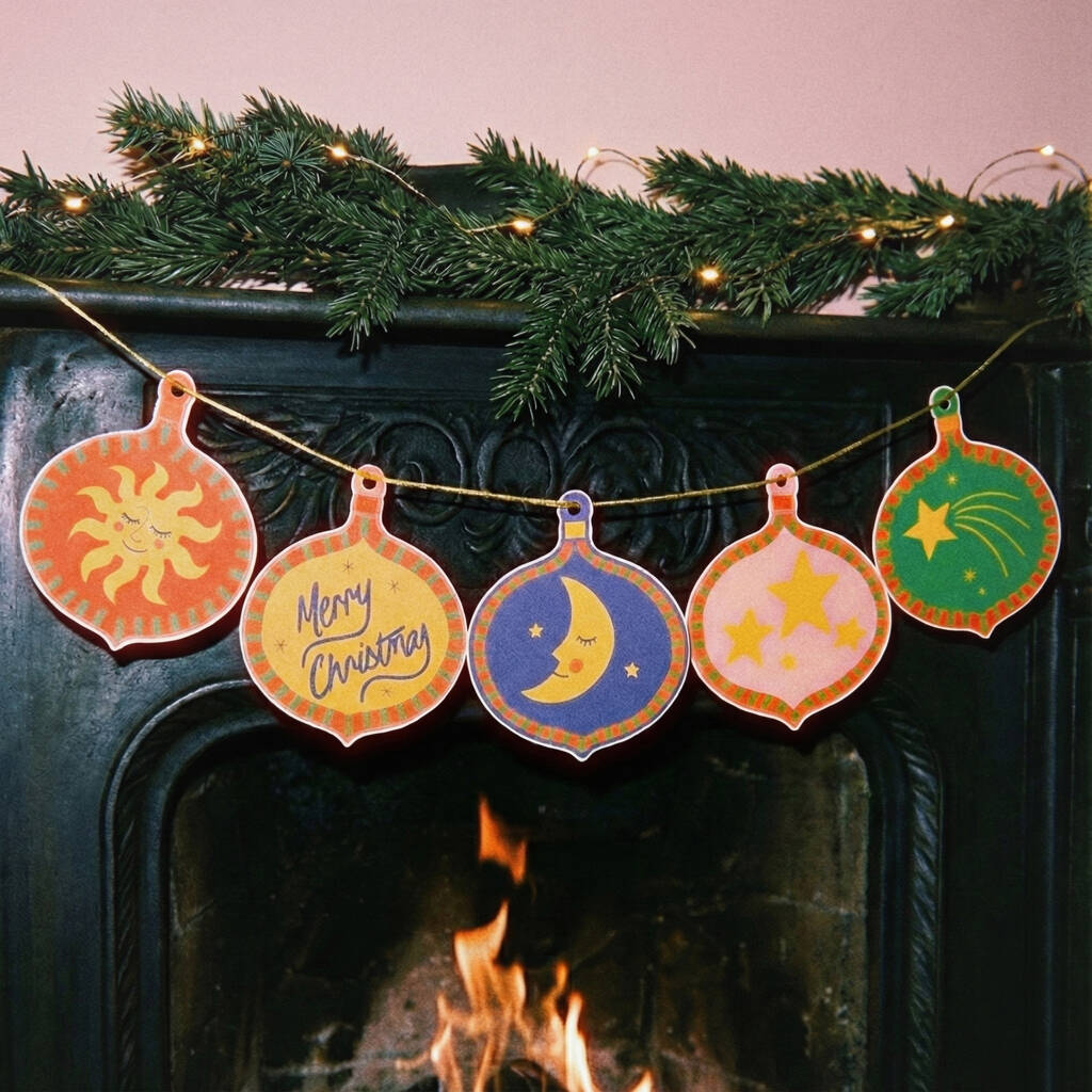 Hand-illustrated celestial bauble garland to make your mantel feel magical this festive season. Made from 100% recycled card for a unique and eco-friendly Christmas decoration.