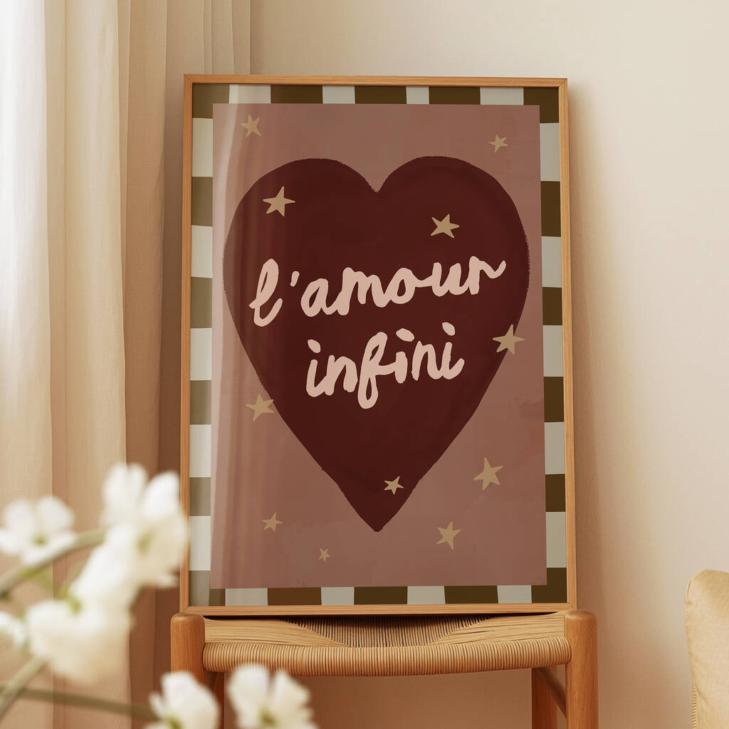 L’amour Infini print – a romantic heart artwork celebrating infinite love. A thoughtful anniversary or Valentine's gift, giclée printed to order for stylish modern homes.