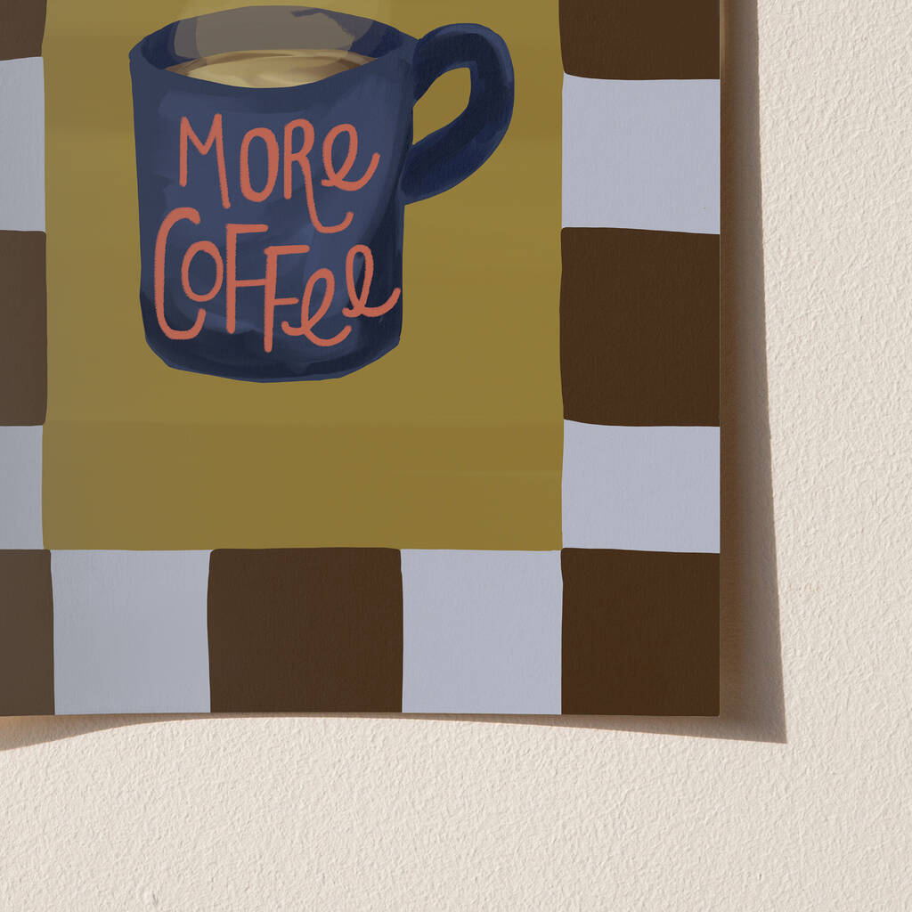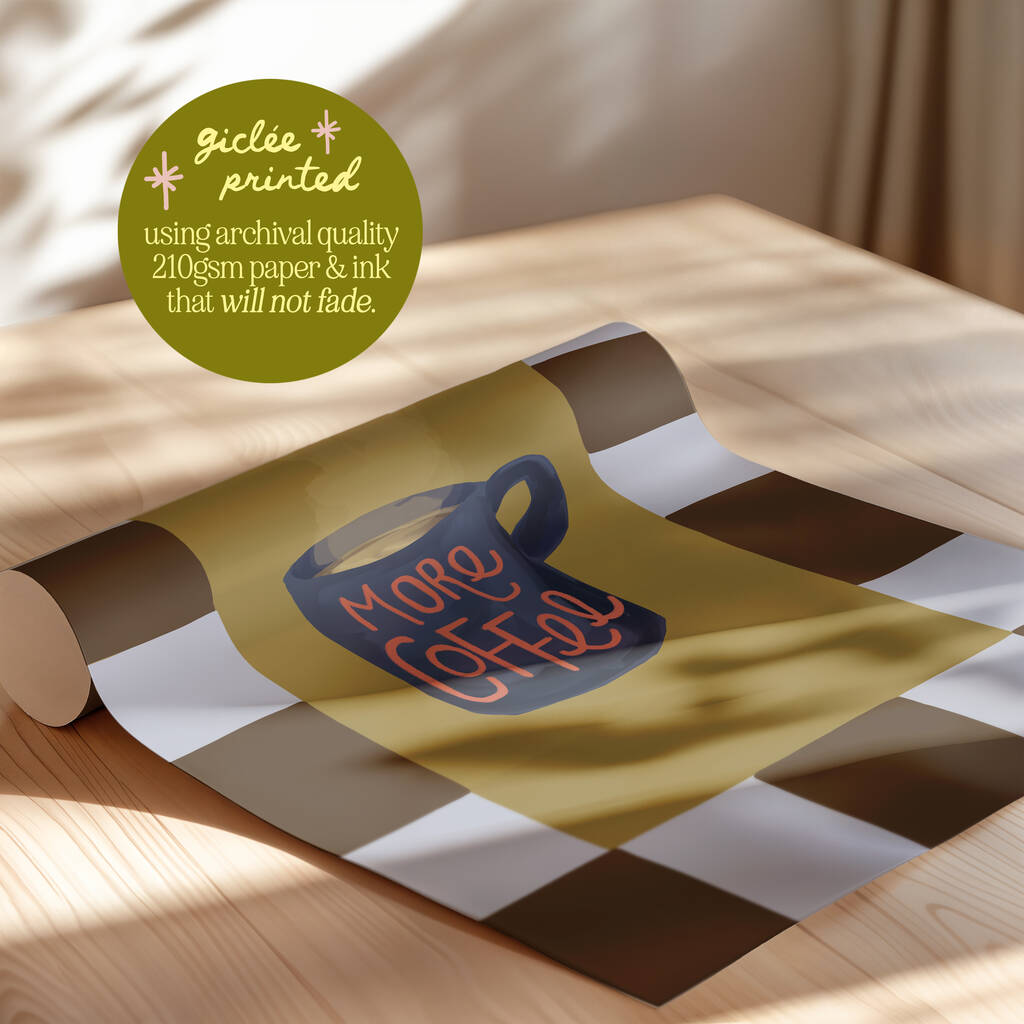 The More Coffee print is hand-illustrated, hand-lettered and full of caffeine-fuelled charm, a modern art print for coffee lovers and stylish kitchens everywhere.