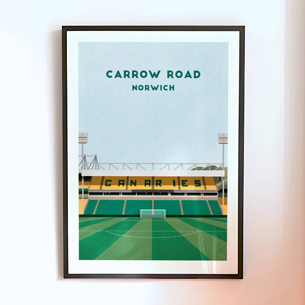 Norwich Carrow Road Football Stadium Art Print Gift, Framed Or Unframed